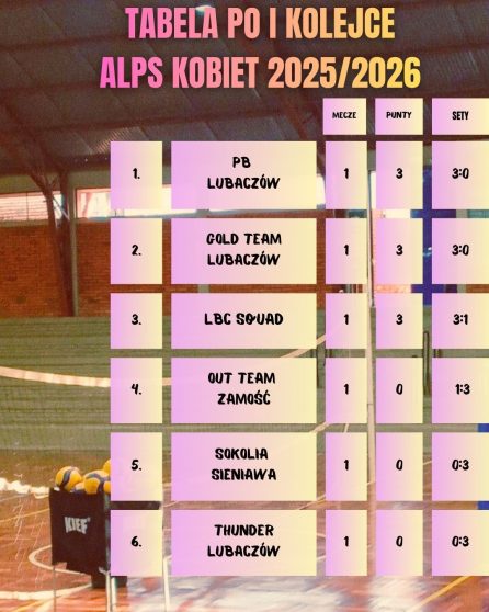 Jesteś tutaj: Start 9 Aktualności 9 TABELA PO I KOLEJCE ALPS KOBIET 2025/2026!